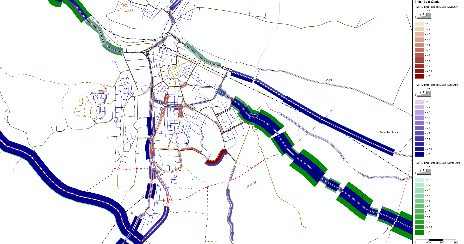 Obr. 3 Ukážka výstupu emisného zaťaženia PM10 v meste Žilina