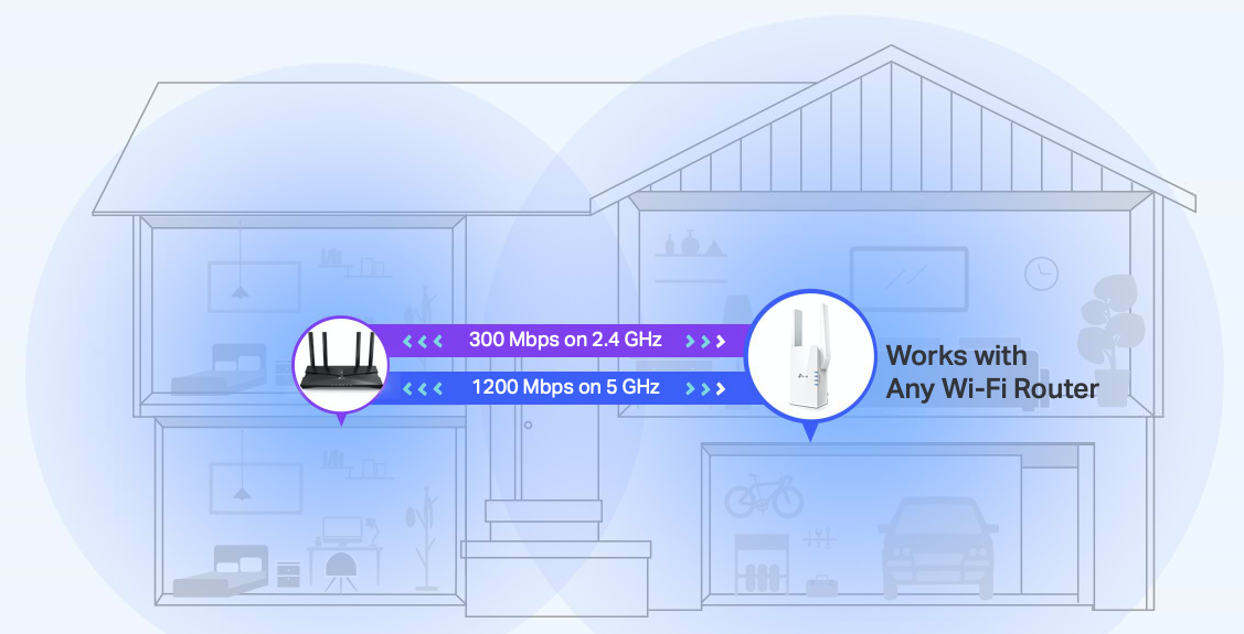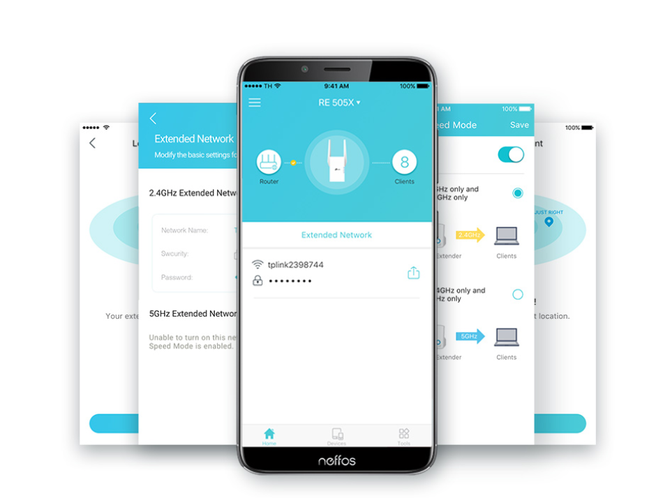Kľúčová požiadavka čo sa týka umiestnenia je, aby v extender bol v dosahu signálu routra a zároveň čo najlepšie pokrýval požadovanú oblasť. Prenosová rýchlosť je definovaná označením AX1500, čiže teoretická maximálna rýchlosť prenosu dát pri dvojpásmovom modeli RE505X dosahuje cca 1 500 Mbit/s, z toho vo frekvenčnom pásme 5 GHz 1 200 Mbit/s a v pásme 2,4 GHz maximum, ktoré sa z tohto pásma dá získať, teda 300 Mbit/s. Vďaka vyššej kapacite v 5GHz pásme môžete k domácej sieti pripojiť viac koncových zariadení, bez toho, aby to malo nejaký viditeľný vplyv na ich výkon.