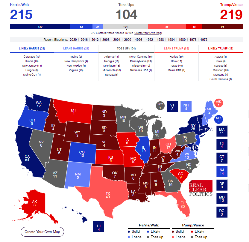 Z pohľadu online stávkových trhov sa zdá, že Trump má šancu získať väčšinu štátov, kde sa rozhoduje o víťazstve. Je však dôležité si uvedomiť, že stávkari nemusia byť nutne obyvateľmi štátov, na ktoré stavajú, čo potenciálne zvyšuje riziko nepresných predpovedí výsledkov jednotlivých štátov.