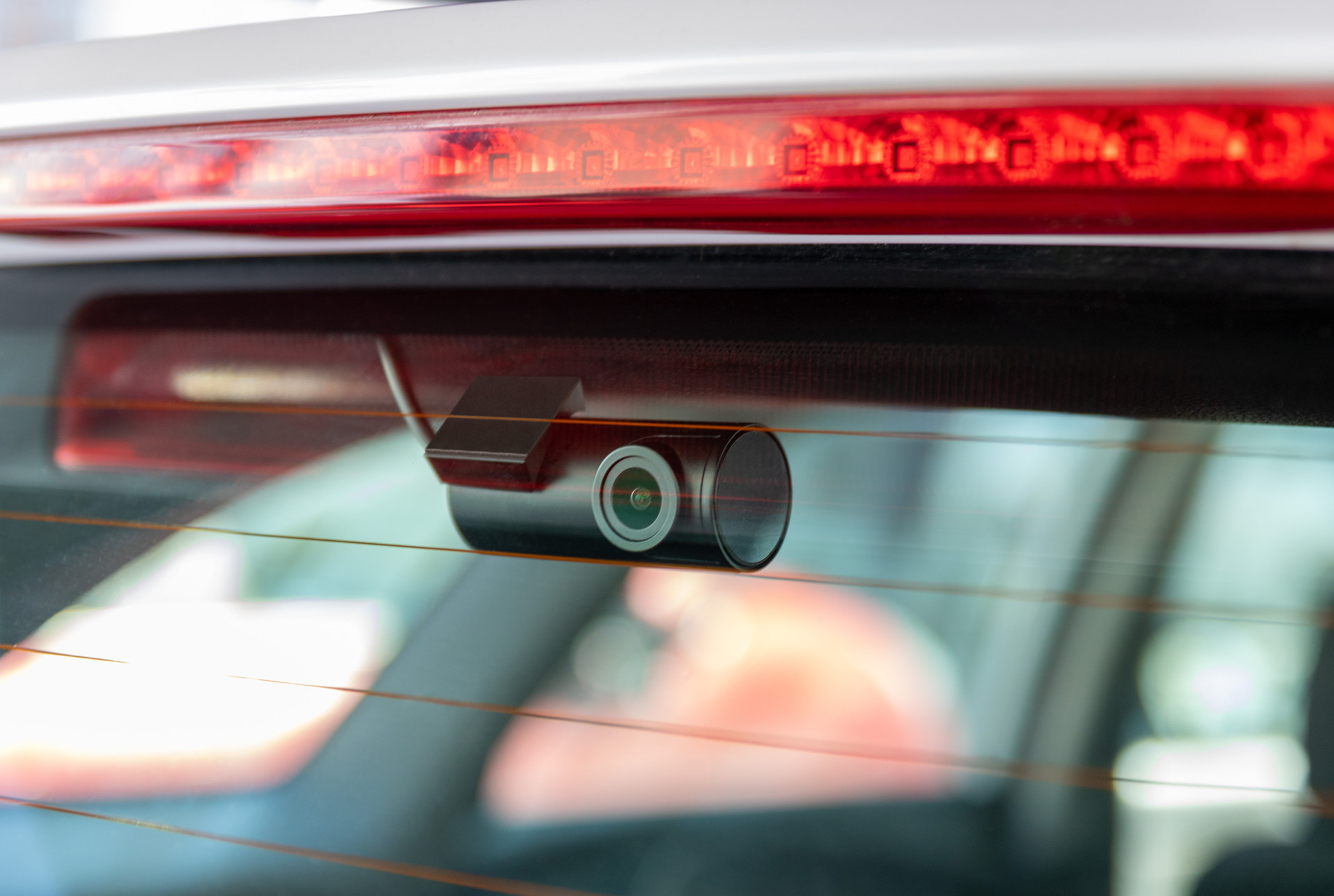 Zadná širokouhlá kamera sa prilepí zvnútra na zadné sklo. Následne treba vhodne umiestniť káblik, ktorým sa zadná kamera pripája j centrálnej jednotke na vnútornom zrkadle.