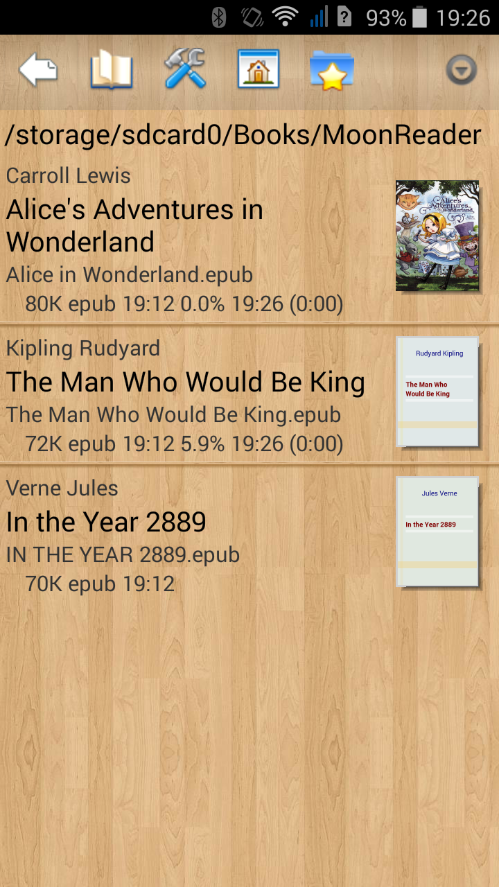 Jednoduchšia aplikácia, ktorá používateľovi hneď na začiatku ponúkne možnosti, odkiaľ čerpať publikácie. Na prvý pohľad sa odlišuje pozadím menu, ktoré pripomína drevo, a pozadie v podobe starého pergamenu je dosadené do všetkých čítaných kníh. Nájdete tu tri internetové katalógy ako zdroj publikácií a poteší upravovateľný spôsob listovania. Nočný režim automaticky upravuje jas displeja a odtieň pozadia. Poteší podpora text-to-speech a existencia variantu Cool Reader GL, ktorá je multiplatformová, využíva OpenGL a je optimalizovaná pre zariadenia s displejom s vysokým rozlíšením.