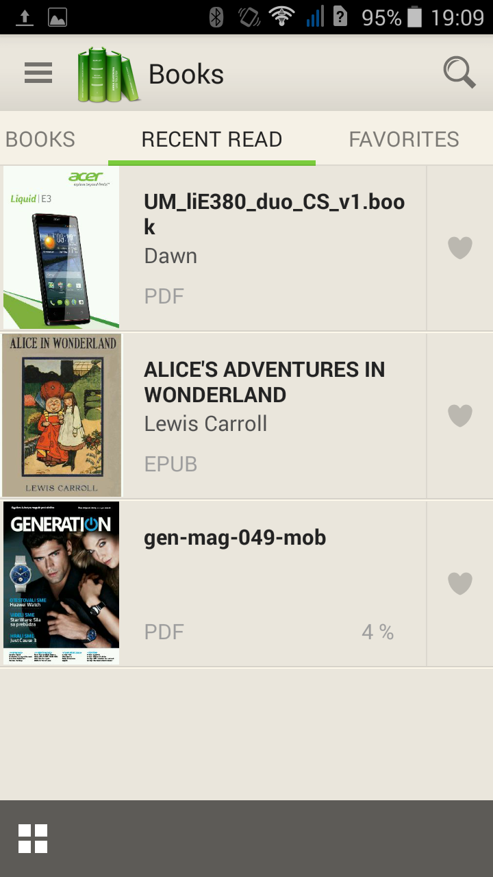 Táto aplikácia patrí do kategórie prehľadných. Poskytuje slušné množstvo doplnkových funkcií, no aj tak pracuje rýchlejšie ako konkurencia a umožňuje napríklad listovanie pomocou dotyku. Pokiaľ máte radi prehľad o všetkom, asi vás poteší, že táto čítačka eviduje štatistiky vášho čítania, ako napríklad percentá pokorenia jednotlivých publikácií. Zdrojov digitálnych kníh a dokumentov tu možno nájsť päť, takže nedostatok v tomto smere nehrozí. Okrem klasických záložiek sa dajú do publikácie robiť aj poznámky a platený variant podporuje o. i. aj ochranu heslom.