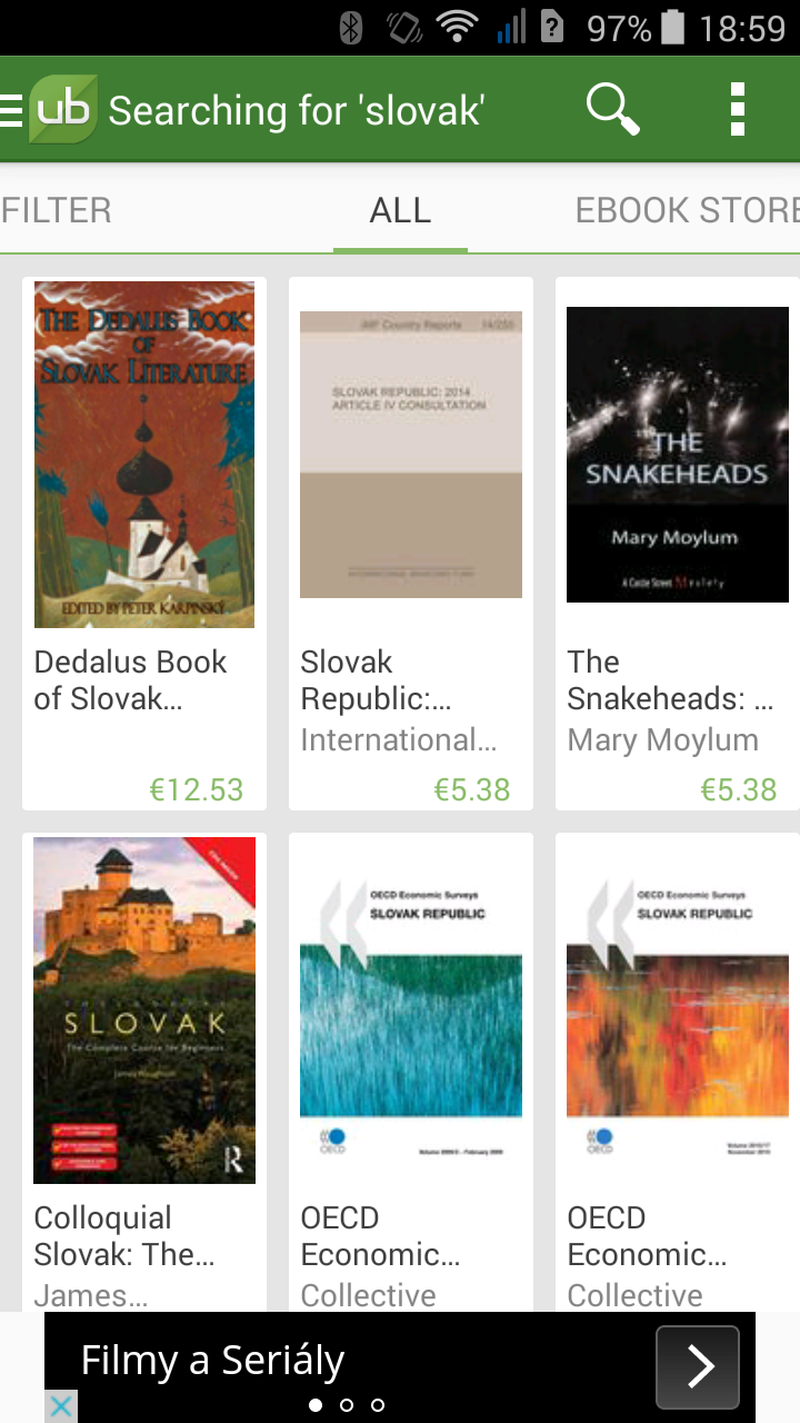 Čítačka s prehľadne spracovaným prostredím, ktorá nemá širokú podporu formátov e-publikácií, ale je zaujímavá napríklad podporou text-to-speechv platenom variante. Bezplatná aplikácia poteší možnosťou robenia poznámok a farebného odlišovania textov či vyhľadávacími funkciami. Praktická je aj možnosť zmeny veľkosti textu a farby pozadia. Zadarmo dostanete jednu publikáciu, ostatné sa dajú digitálne zakúpiť priamo v aplikácii. Slovenské tituly sme ani tu v databáze nenašli, takže ak vám nevyhovuje angličtina, budete musieť svoju knižnicu zaplniť z iného zdroja.