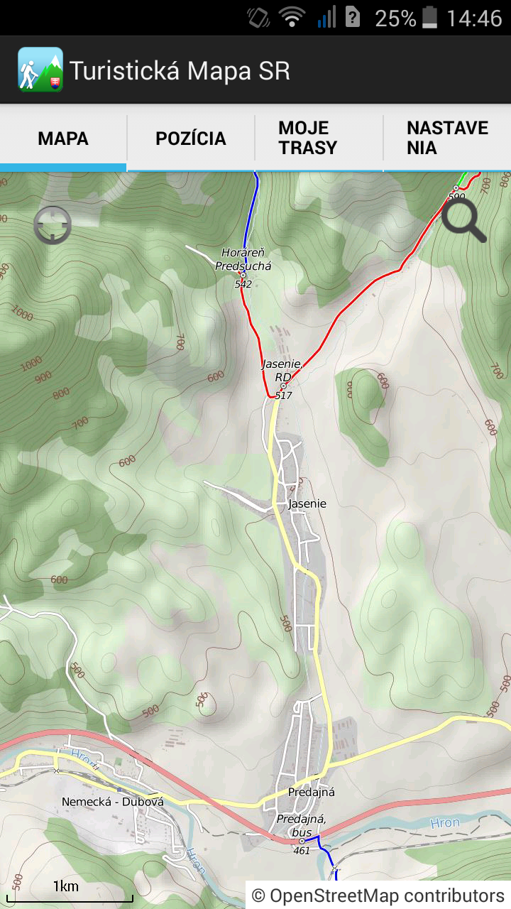 Aj tí z vás, ktorí sa radi vydávajú na túru s batohom cez hory, majú možnosť pomôcť si smartfónom. Táto aplikácia je pomerne jednoduchá a nedisponuje množstvom funkcií, zobrazuje však na mape turistické chodníky rozlíšené farbou. Aby softvér fungoval, treba mať aktivovaný modul GPS a internet. V takom prípade dokáže aplikácia napríklad určiť vašu polohu a nadmorskú výšku. Doplnková funkcia sledovania trasy, žiaľ, nie je zadarmo. Poteší nastavenie citlivosti GPS, ktoré umožňuje šetriť batériu zariadenia.
