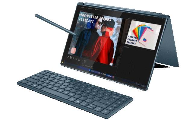 - Lenovo Yoga Book 9i (14”, 10), ktorý prináša dve väčšie PureSight OLED obrazovky fungujúce zároveň ako dokonalé plátno pre kreatívnu činnosť v spolupráci s AI.