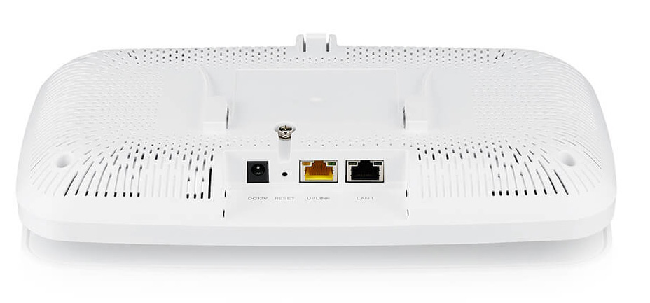 Výrobca pamätal aj na inštaláciu a v balení je okrem držiaka na upevnenie na stenu aj priesvitný ochranný kryt, ktorý chráni zariadenie pred ušpinením počas montáže. Zyxel WAX640S-6E sa dodáva bez napájacieho zdroja, pretože primárne sa predpokladá napájanie po eternetovom kábli s využitím technológie PoE (Power over Ethernet). Samozrejme, zariadenie má aj konektor na pripojenie 12 V zdroja a konektor RJ-45 na pripojenie zariadenia pomocou kábla. Na lepšiu ochranu je na zadnej stene aj svorka na pripojenie uzemnenia.