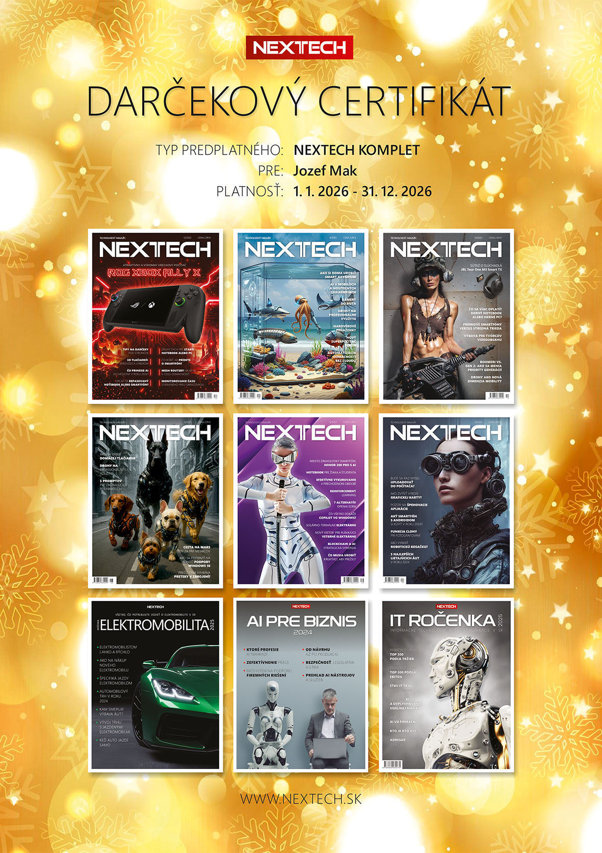 Magazín NEXTECH - to je inteligentné čítanie pre každého, koho zaujímajú technológie budúcnosti. Využite možnosť zabezpečiť si pravidelný prísun zaujímavých článkov z oblastí digitálnych technológií. A navyše, každý, kto si predplatí celoročné predplatné časopisu v niektorej z vybraných verzii, získa na celý rok 2026 skvelý darček:
